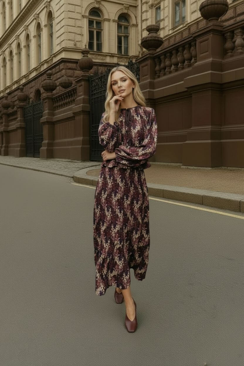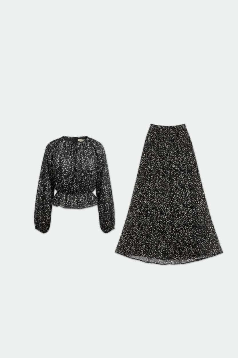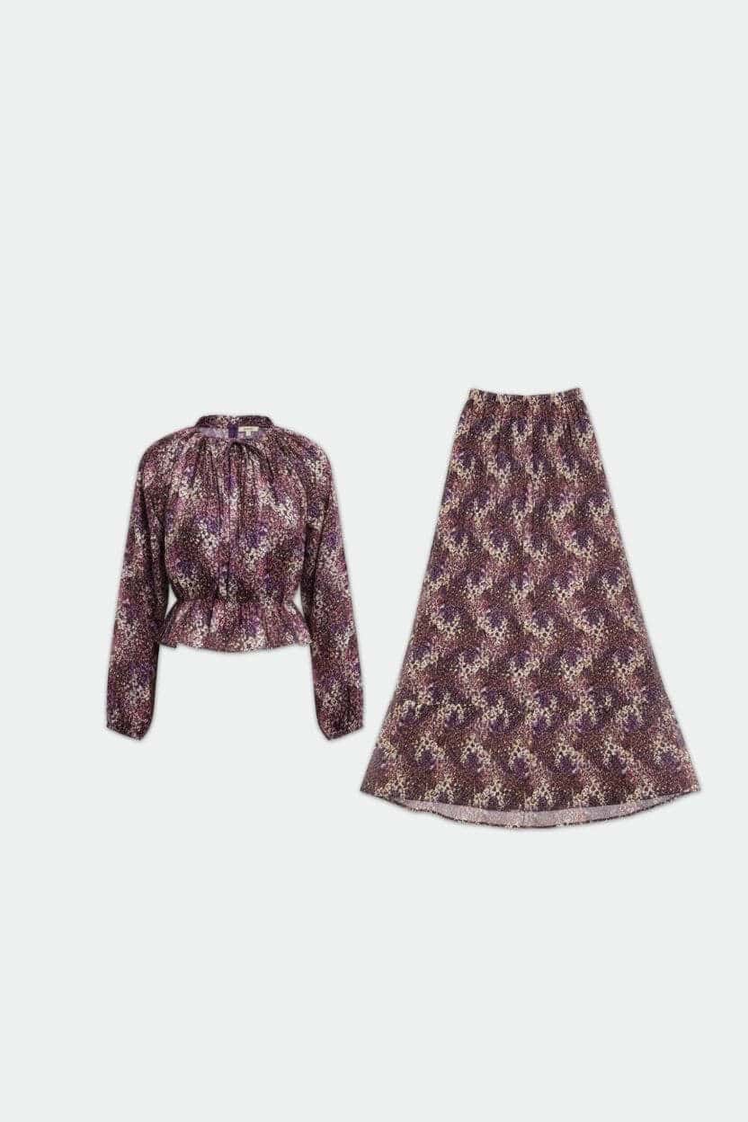 סט מבד שיפון עם ביטנה מלאה, גומי במותן.