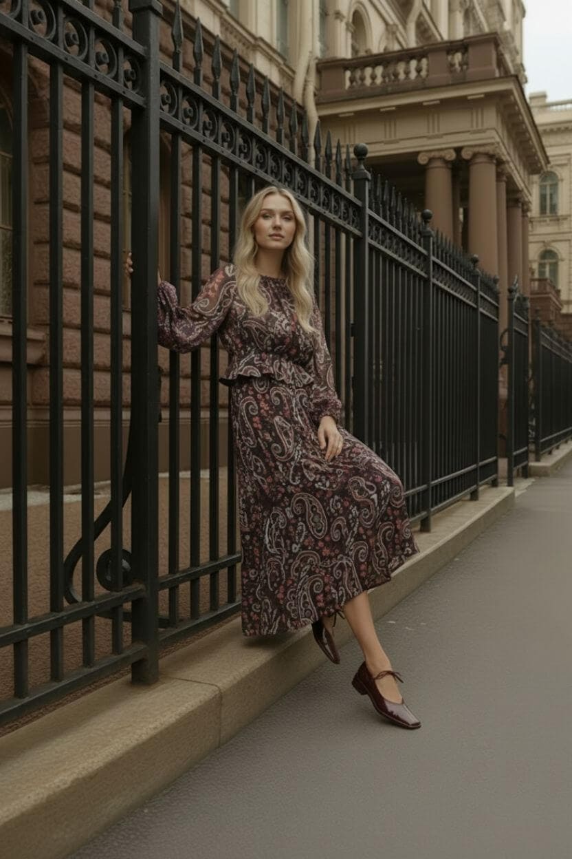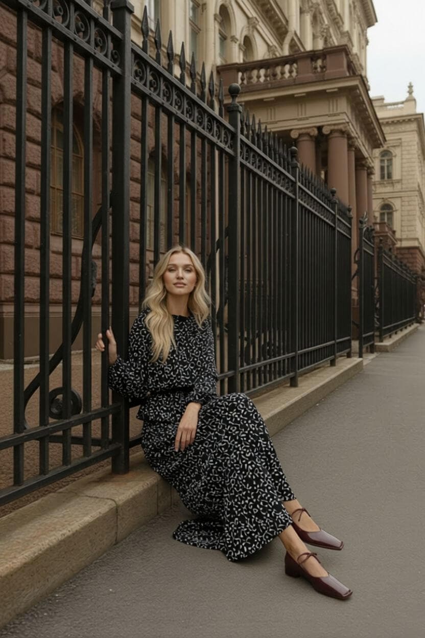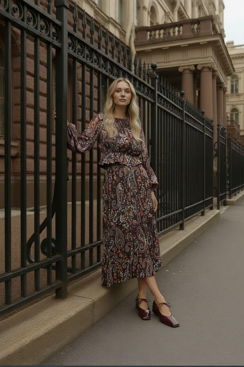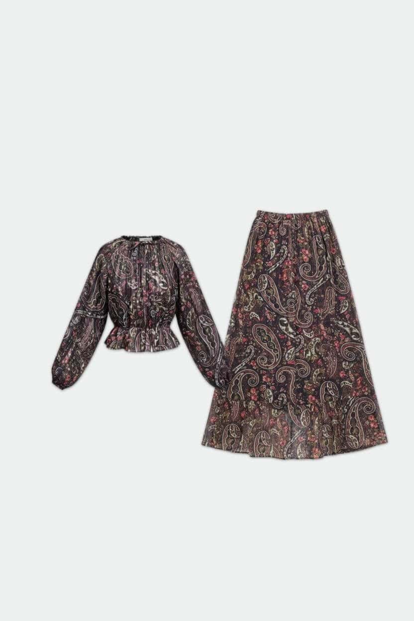 סט מבד שיפון עם ביטנה מלאה, גומי במותן.