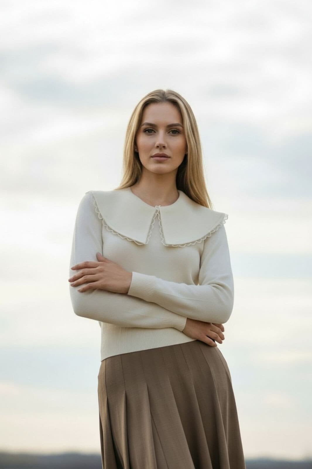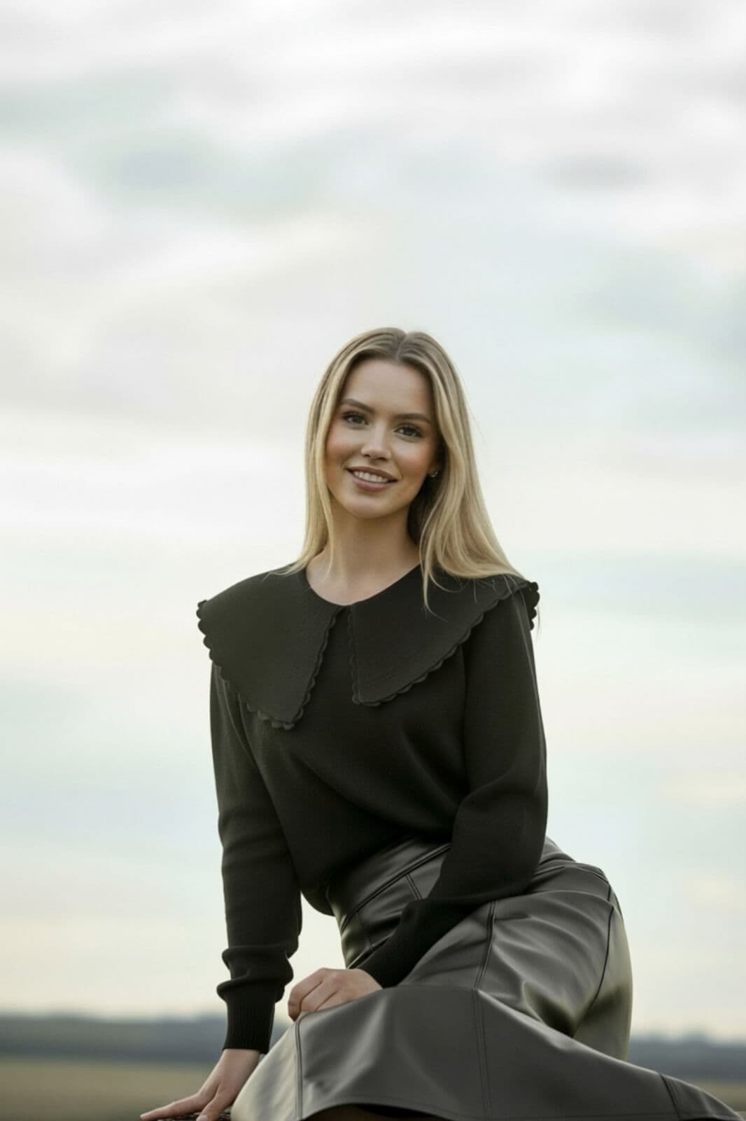סריג צווארון גדול שחור