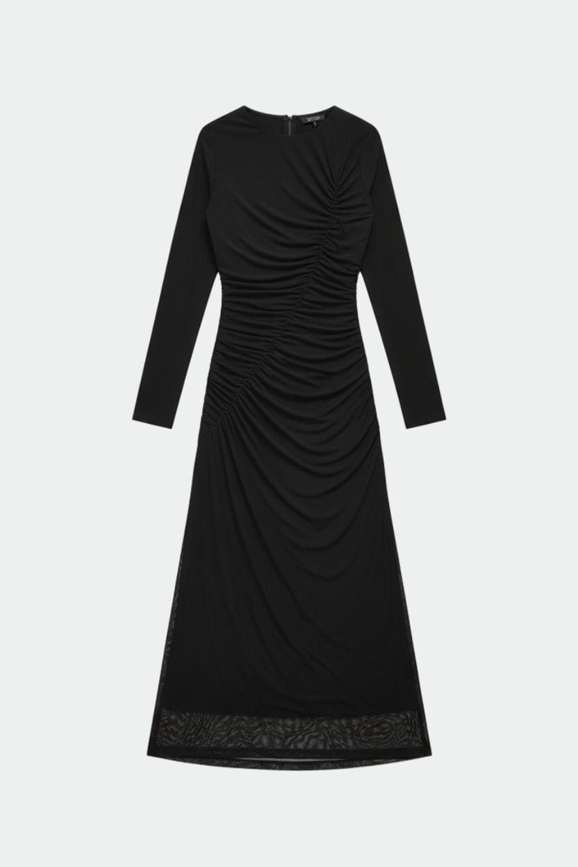 שמלה מבד שיפון לייקרה עם ביטנה מלאה, השמלה בגזרת A.